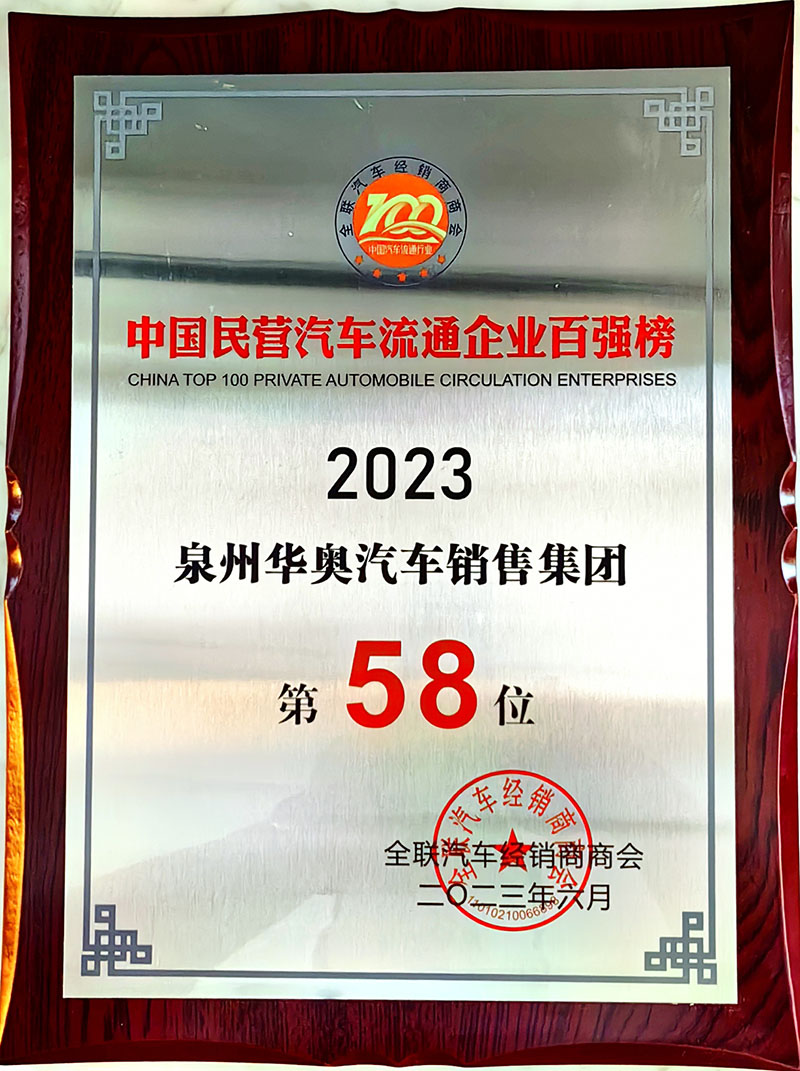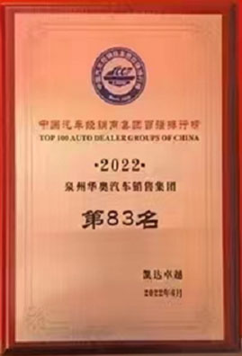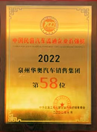 2022年荣获“中国民营汽车流通企业百强榜”全国第58位