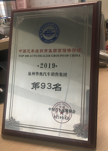 2019年华奥集团荣获福建车市品牌五星经销商集团